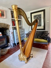 Unique and beautiful gold leaf instrument. Exceptional tone with extended soundboard, built by son of the famous firm Joseph Obermayeras a slightly smaller and lighter ladies' instrument. Location:- Cambridge Contact:- Elaine Email: elaine@elainepamphilon.com Tim Hampson 22 string